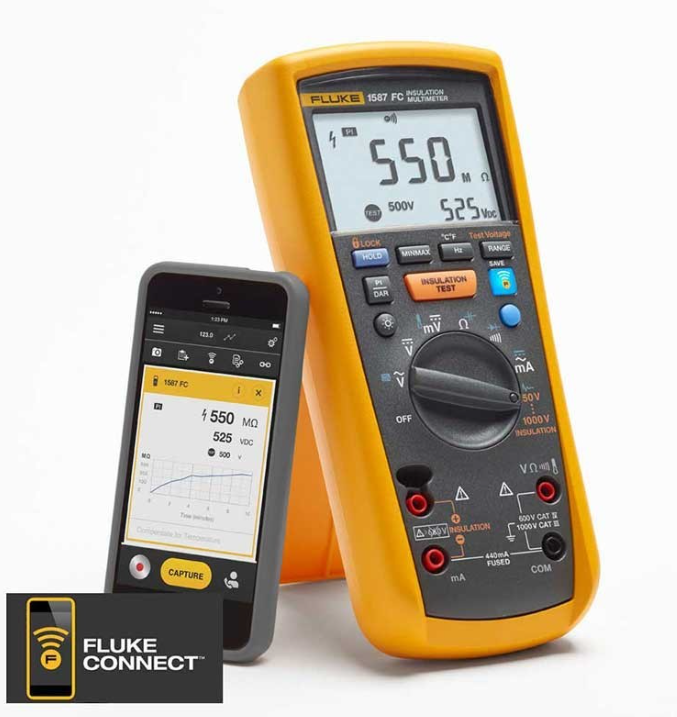- فولتاج اختبار العزل لمجموعة واسعة من التطبيقات (1587: 50 فولت، 100 فولت، 250 فولت، 500 فولت، 1000 فولت)